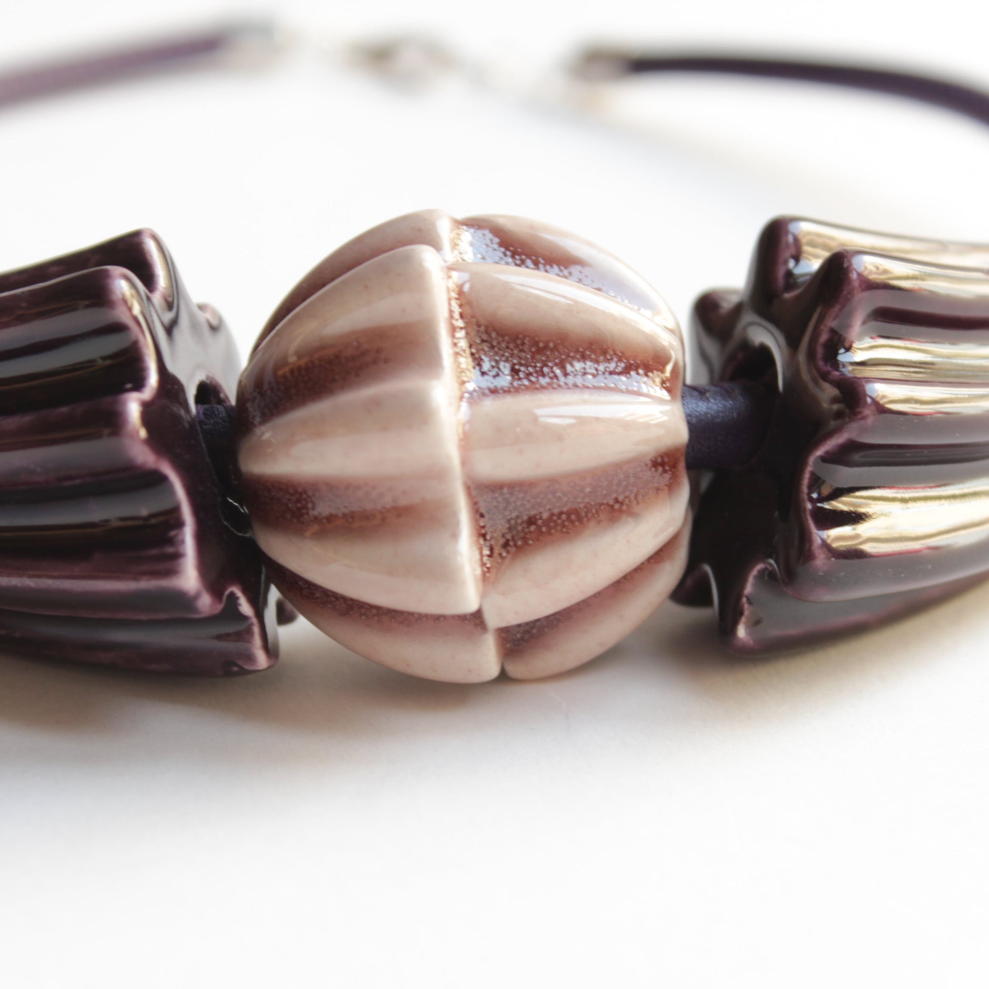 Antis è una collana ispirata alla natura e all’architettura, con un design scultoreo e armonioso. È composta da tre elementi ceramici modellati a mano, caratterizzati da profonde scanalature lineari che donano al gioiello eleganza, dinamismo e forte originalità.