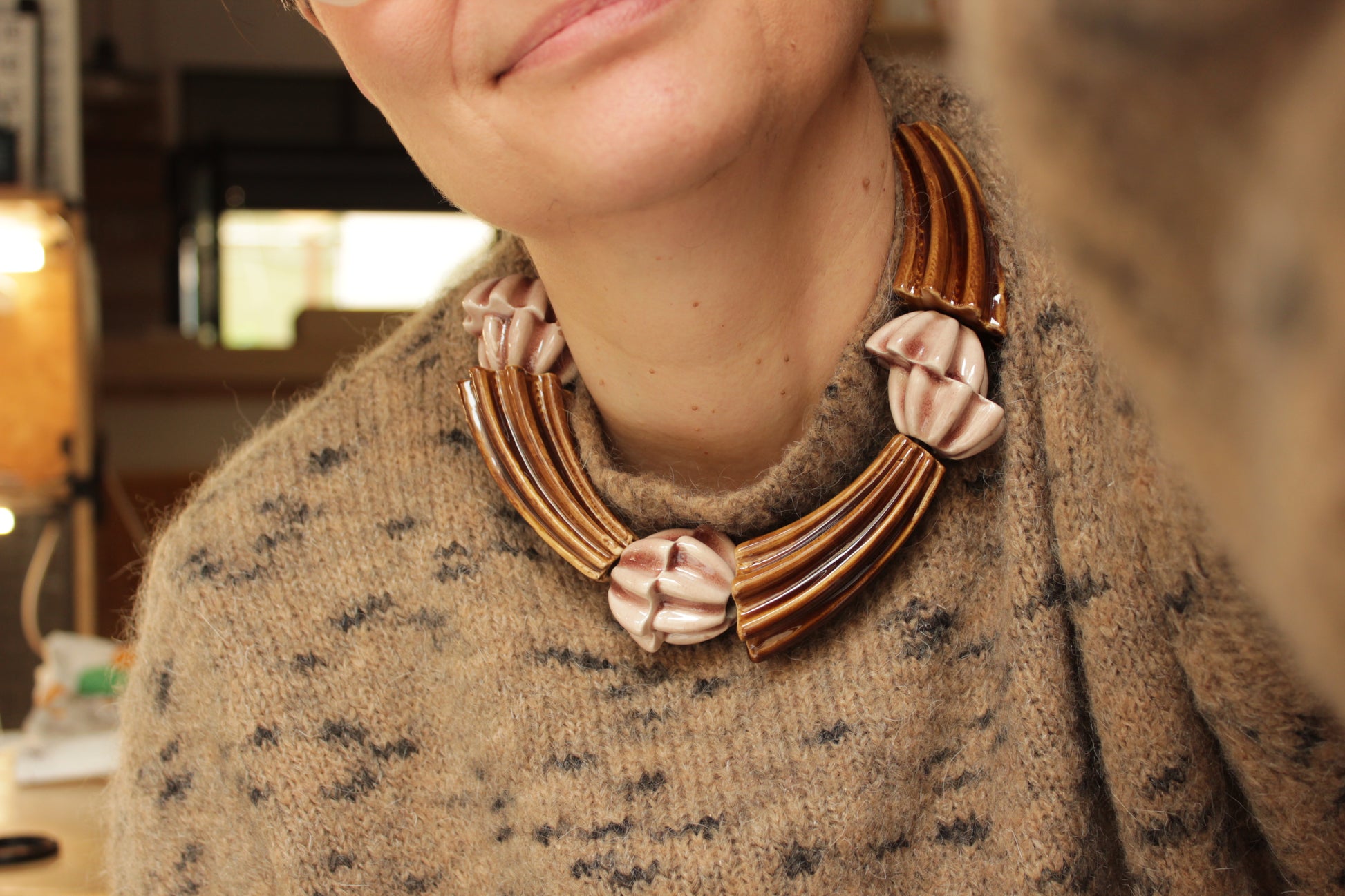 Come tutte le creazioni Officine Gualandi, anche Athena è progettata per essere comoda da indossare nonostante le dimensioni importanti. Gli elementi in ceramica sono vuoti all’interno, garantendo una struttura leggera e ben bilanciata, piacevole da portare per tutta la giornata.