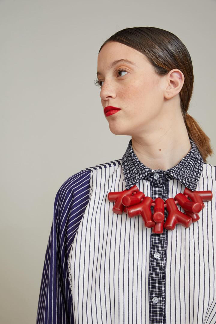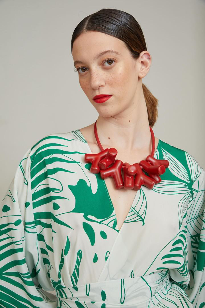 La collana Corallo è un grande gioiello scultura che non passa inosservato e che offre personalità e carattere a qualsiasi look.
