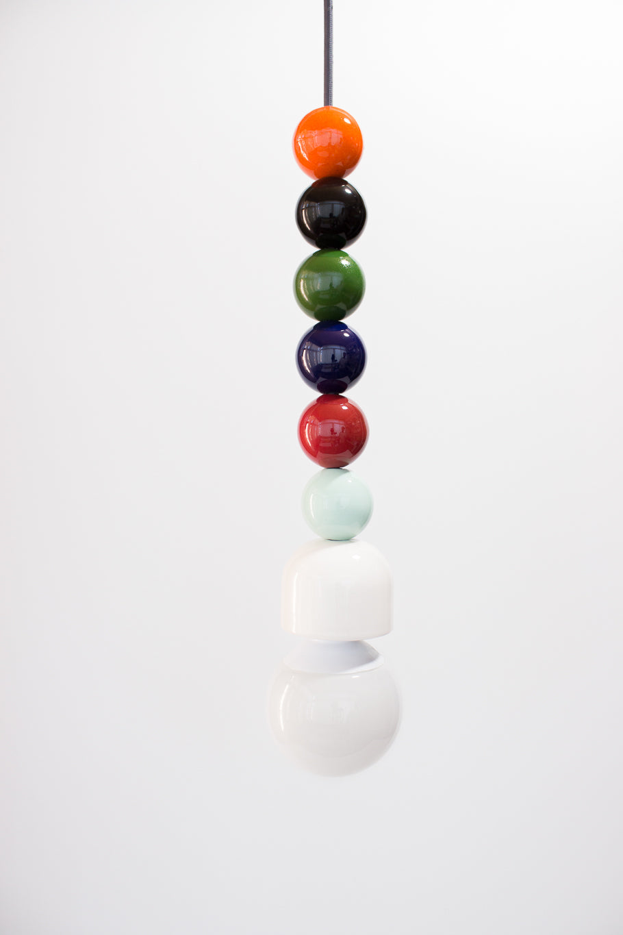 La Tea Sfere è una lampada a sospensione formata da sei sfere in ceramica smaltata di vari colori, portalampada in ceramica smaltata bianca e cavo elettrico rivestito in tessuto GRIGIO (attenzione, il cavo disponibile al momento è GRIGIO, elegante e più facile ad adattarsi agli ambienti).